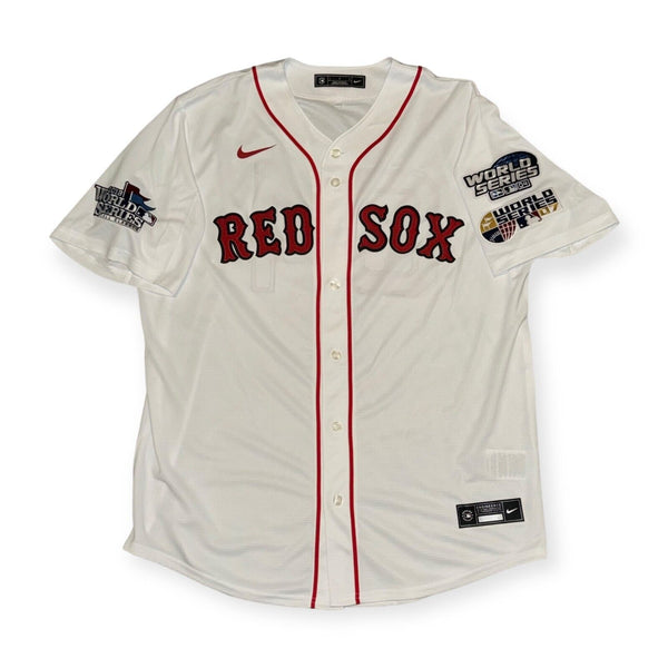 This authentic jersey with "3x WS Champs" inscription has been personally hand-signed by David Ortiz of the Boston Red Sox.100% Authentic. Patches from all his World Series wins Certificate of Authenticity by JSAExact location of signature may varyasgmemorabilia.com