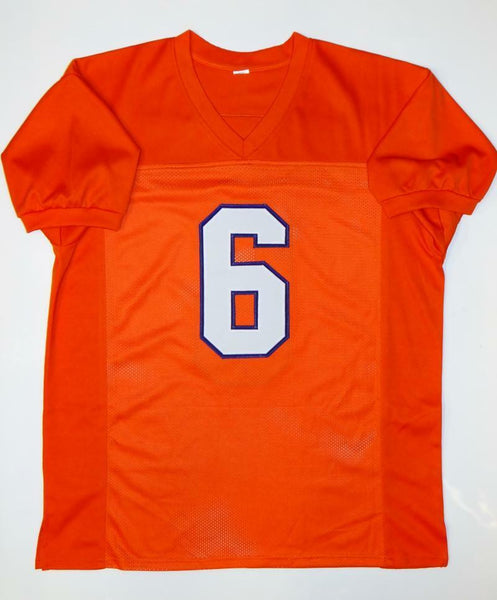 DeAndre Hopkins Autographed Orange College Style Jersey- JSA W Authenticated THIS IS NOT AN NCAA JERSEY. THIS HAS NO TAGS, NO LOGOS, NO EMBLEMS. This is a Hand Autographed Jersey of DeAndre Hopkins. This is Custom Made (Non Name Brand) Authentic Style (Stitched Letters and Numbers). This item has a James Spence Witness Protection Authentication, which Comes with a JSA #'ed Sticker and a JSA COA. You can view this item on the SpenceLOA website and it shows when and where the item was signed. It was signed either at a public autograph appearance or a Private Signing. This is a stock photo of the item. Although you may not receive this exact item, the item you receive is virtually identical and brand new in great shape. Jersey size is XL.