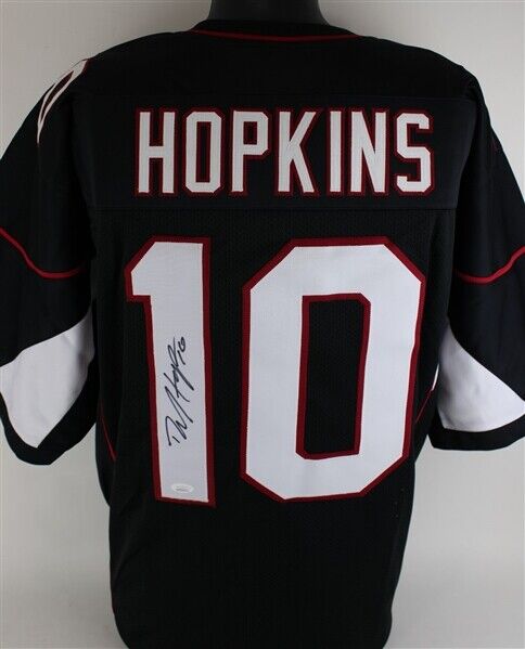 Custom on-field style jersey with everything sewn on, size XL. Jersey has been hand-signed in black felt-tip pen by DeAndre Hopkins. The lot / autograph(s) includes an official James Spence Authentication (JSA) hologram and matching COA for authenticity purposes. The signing of this item was witnessed by JSA.Authentication: JSA COA