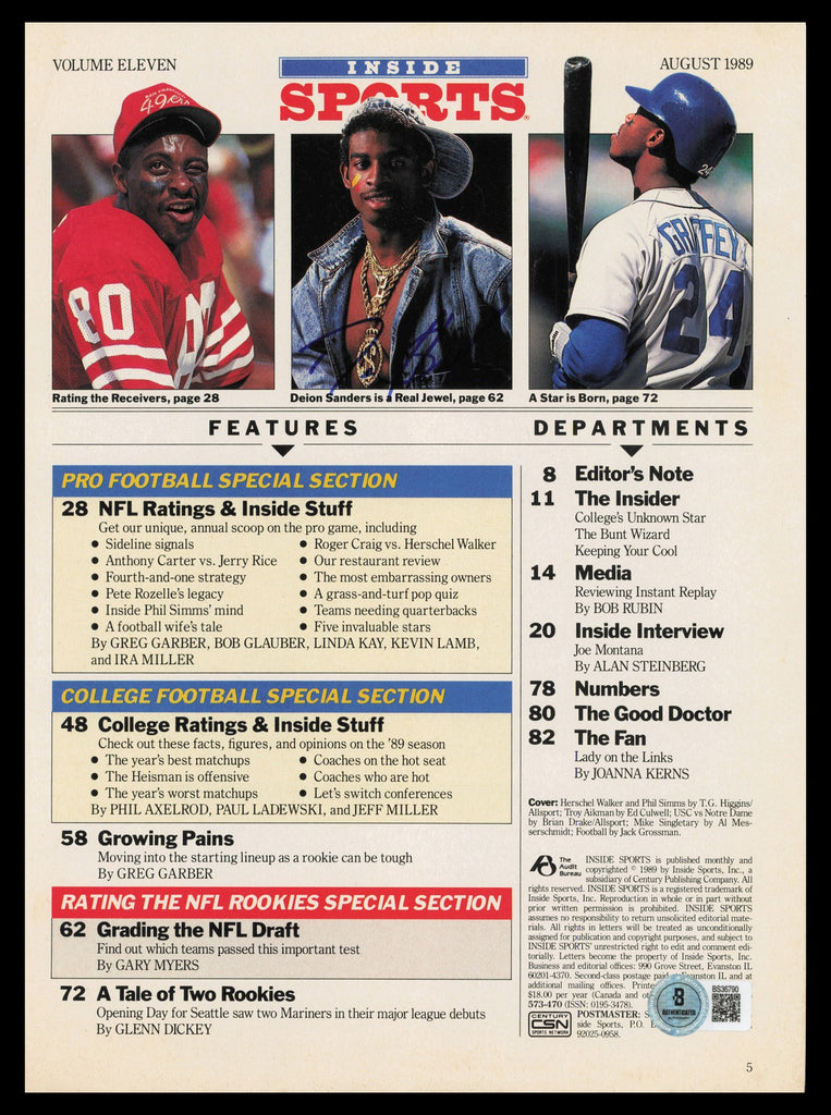 This is an 8x11 Magazine Page Photo that has been hand signed by Deion Sanders. This item has been certified authentic by Beckett Authentication (BAS) and comes with their tamper-proof QR Code hologram.