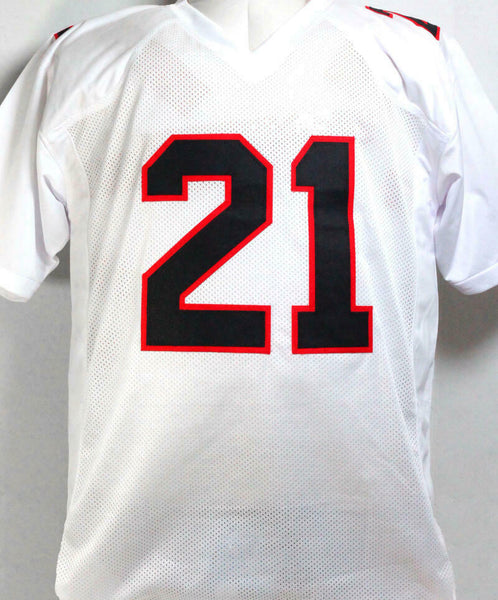 Deion Sanders Autographed TB White Pro Style Jersey - Beckett W Auth *Silver THIS IS NOT AN NFL JERSEY. THIS HAS NO TAGS, NO LOGOS, NO EMBLEMS. This is a hand autographed Jersey of Deion Sanders. This is Custom Made (non name brand) Authentic Style (stitched letters and numbers) Jersey. This item has a Beckett Witnessed Authentication, which comes with a numbered and a matching Beckett Certificate of Authenticity. You can view this item on the Beckett Authentication website, it shows when and where the item was signed. It was signed either at a public autograph appearance or a private signing. This is a stock photo of the item. Although you may not receive this exact item, the item you receive is virtually identical and brand new in great shape. Jersey size is XL.