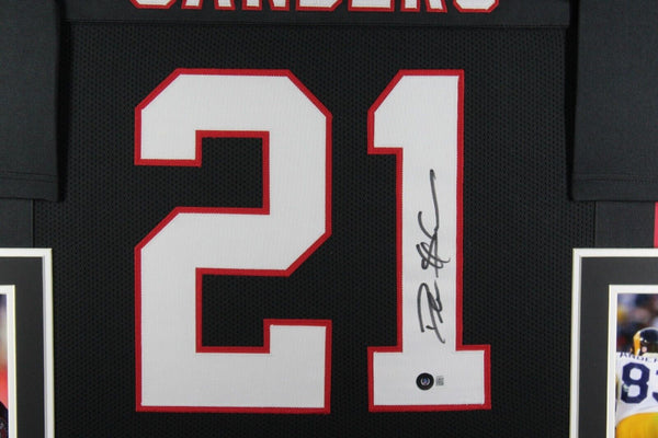 DEION SANDERS (Falcons black SKYLINE) Signed Autographed Framed Jersey Beckett