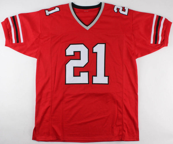 Custom on-field style jersey. Everything sewn on, size XL. Hand-signed in black felt-tip pen by Deion Sanders (HOF). The lot / autograph(s) includes an official James Spence Authentication (JSA) hologram and matching COA for authenticity purposes. The signing of this item was witnessed by JSA.Authentication: JSA COA