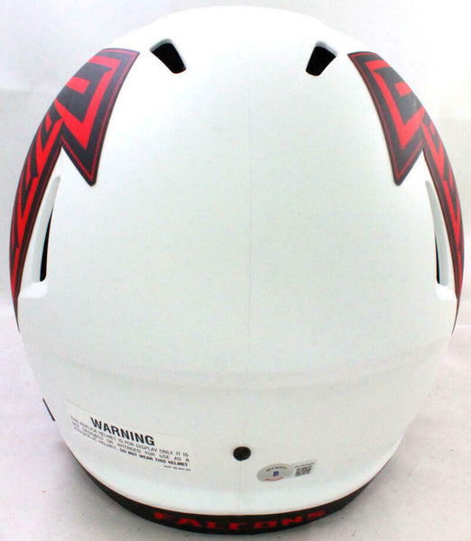 Deion Sanders Signed Atlanta Falcons Lunar Speed F/S Helmet - BA W Holo *Red This is a Deion Sanders of the Atlanta Falcons hand autographed Riddell Full Size Lunar Speed Replica Helmet. This item has a Beckett Authentication, which comes with a Beckett numbered hologram and a generic Beckett Certificate of Authenticity. You can view this item on the Beckett Authentication website and it shows when and where the item was signed. It was signed either at a public autograph appearance or a private signing. This is a stock photo of the item. Although you may not receive this exact item, the item you receive is virtually identical, brand new, and in great shape.