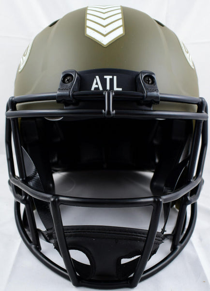Deion Sanders Signed Atlanta Falcons F/S Salute to Service Speed Authentic Helmet- Beckett W Hologram *Silver This is a Deion Sanders of the Atlanta Falcons hand autographed Riddell Full Size Salute to Service Speed Authentic Helmet. This item has a Beckett Witnessed Authentication, which comes with a Beckett numbered sticker hologram and a QR code for verification. You can view this item on the Beckett Authentication website and it shows when and where the item was signed. It was signed either at a public autograph appearance or a private signing. This is a stock photo of the item. Although you may not receive this exact item, the item you receive is virtually identical, brand new, and in great shape.