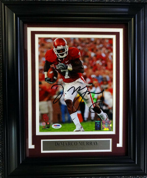This is a framed 8x10 photo, approximately 15x18 with the frame, that has been hand signed by DeMarco Murray. It has been authenticated by PSA/DNA and comes with their sticker and matching certificate.