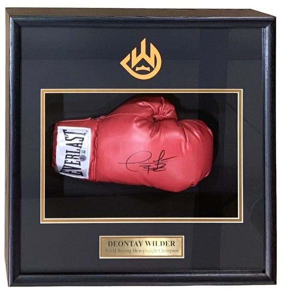 Featured is a Deontay Wilder signed Everlast boxing glove. This glove has been hand signed by Wilder and comes with the Beckett witnessed hologram and certificate of authenticity. This glove has been professionally framed and matted and is approximately 19x19x5. This glove would make a great addition to any sports memorabilia collection!. SPECIFICATIONS Autographed By: Deontay Wilder Team: Sport: Boxing Authentication: Beckett Grading Services