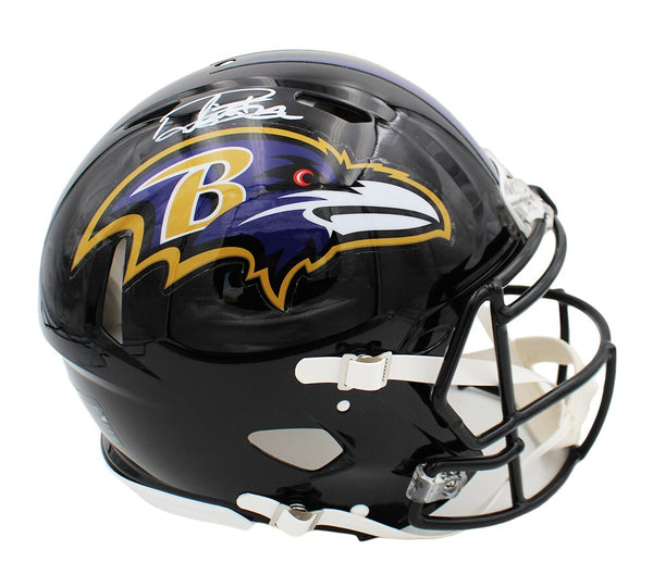 A Baltimore Ravens Speed Authentic NFL Helmet hand signed by Derrick Henry. The item and signature are in excellent condition. Derrick Henry is an American professional football player, widely regarded as one of the most dominant running backs in the NFL. He has broken multiple records, including becoming the eighth player in NFL history to rush for over 2,000 yards in a season. He has earned multiple Pro Bowl selections and All-Pro honors. AUTHENTICATION: The item is accompanied by a PSA Serial Numbered and Databased Hologram.