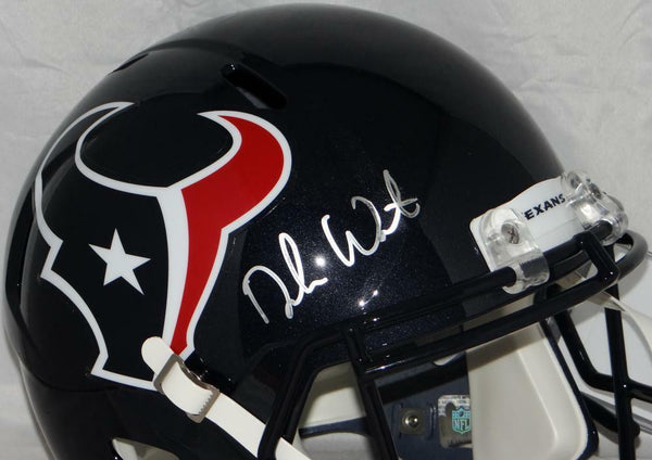 Deshaun Watson Autographed Houston Texans F/S Speed Helmet- JSA W Auth *Silver This is a Hand Autographed Helmet of Deshaun Watson of The Houston Texans. This is a Riddell Football Full Size Replica Helmet. This item has a James Spence Witness Protection Authentication, which Comes with a JSA #'ed Sticker and a Matching JSA COA. You can view this item on the SpenceLOA website and it shows when and where the item was signed. It was signed either at a public autograph appearance or a Private Signing. This is a stock photo of the item. Although you may not receive this exact item, the item you receive is virtually identical and brand new in great shape.