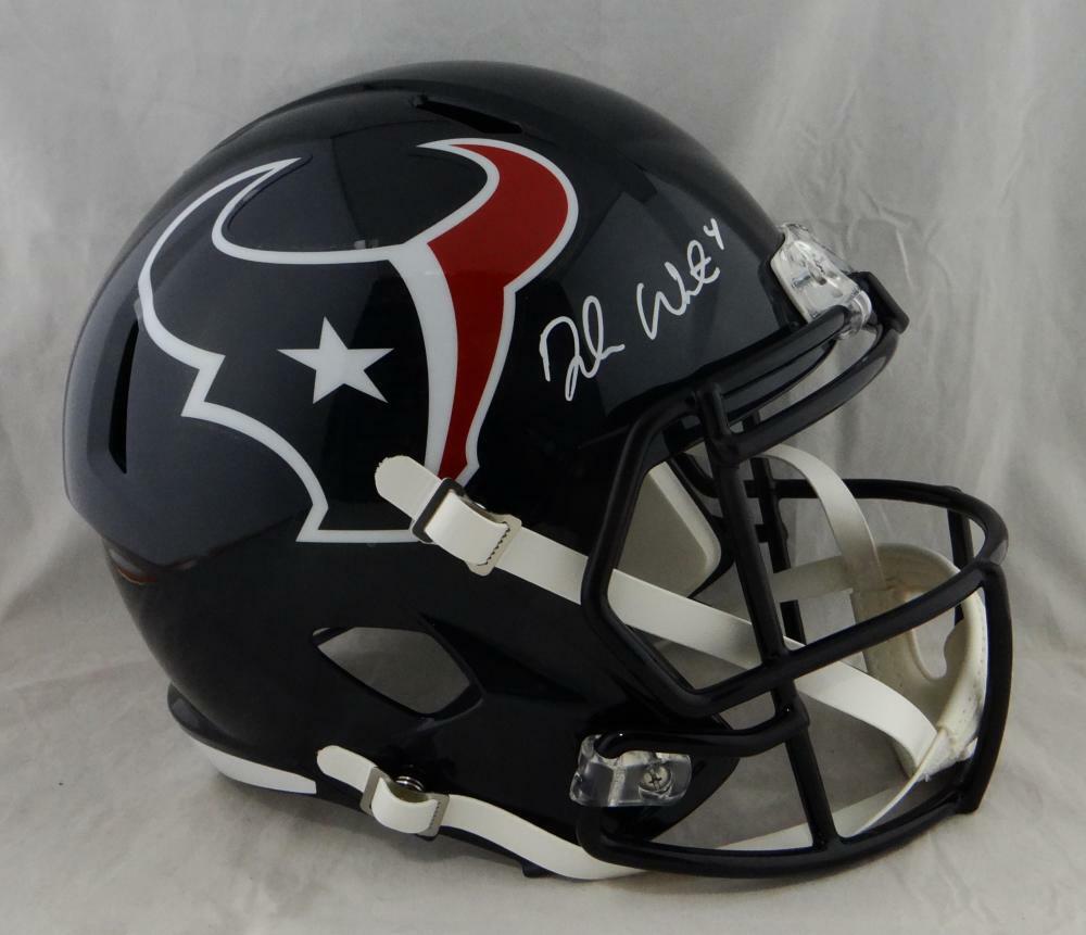 Deshaun Watson Autographed Houston Texans F/S Speed Helmet- JSA W Auth *White This is a Hand Autographed Helmet of Deshaun Watson of The Houston Texans. This is a Riddell Football Full Size Replica Helmet. This item has a James Spence Witness Protection Authentication, which Comes with a JSA #'ed Sticker and a Matching JSA COA. You can view this item on the SpenceLOA website and it shows when and where the item was signed. It was signed either at a public autograph appearance or a Private Signing. This is a stock photo of the item. Although you may not receive this exact item, the item you receive is virtually identical and brand new in great shape.
