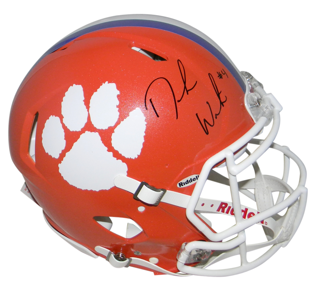 Deshaun Watson, former All-American quarterback for the Tigers, has hand signed this Clemson Riddell Speed full-size authentic helmet at a private signing. This helmet is fully padded inside like the ones worn on the field. This item comes with a certificate of authenticity (COA) from Beckett Authentication Services and was signed in the presence of one of their representatives. You will receive a serial-numbered COA along with a matching serial-numbered sticker on the helmet. The authenticity can be verified online by entering the serial number.Item pictured may not be the exact item you will receive. It will be similar quality, and we guarantee your satisfaction.