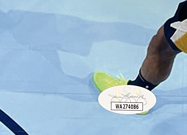 Featured is an Desmond Bane signed 11x14 Memphis Grizzlies photo. This photo was handed signed by Desmond Bane in the presence of a JSA authentication representative. Included with the photo is a JSA hologram and certificate of authentication. This photo would make a great additional to any sports memorabilia collection.. SPECIFICATIONS Autographed By: Desmond Bane Team: Memphis Grizzlies Sport: Basketball Authentication: James Spence Authentication (JSA)
