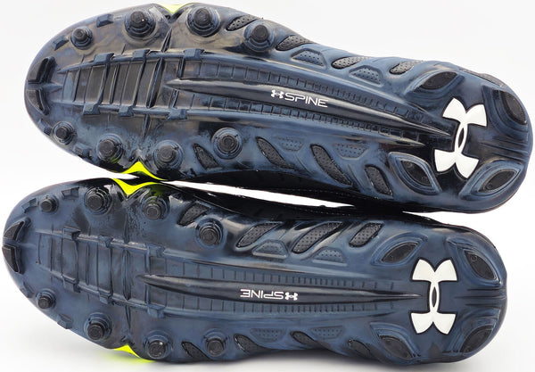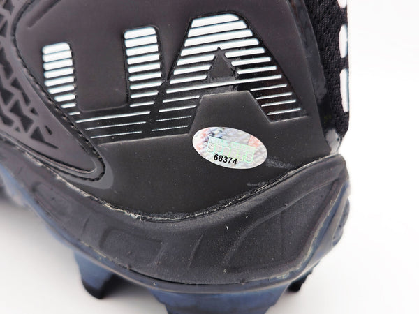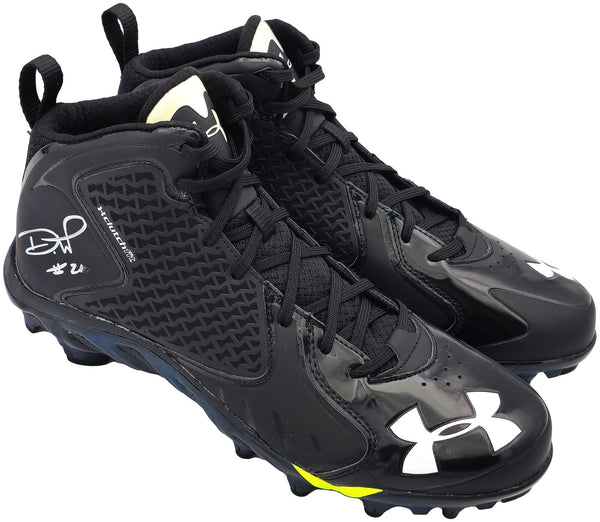 This is a pair of size 10.5 Black Under Armour UA Team Spine Fierce MC Cleats that has been hand signed by Devon Witherspoon. The right cleat is signed. This item was signed in the presence of a Mill Creek Sports representative and comes with their serial numbered hologram and matching certificate of authenticity.