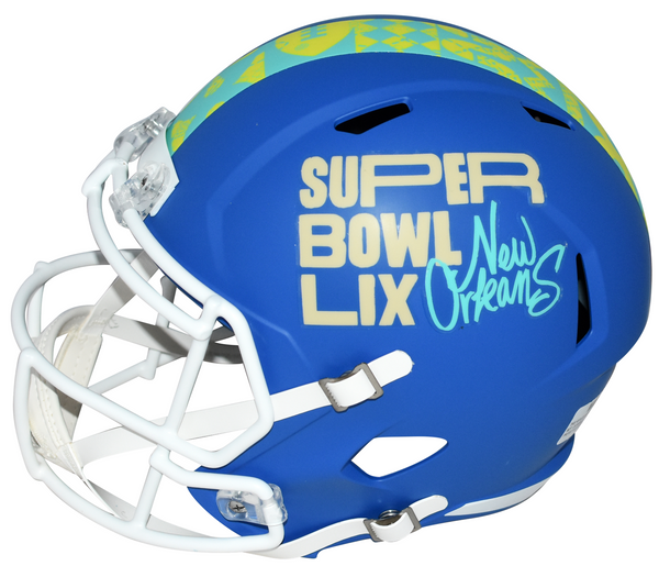 Devonta Smith, star wide receiver for the Philadelphia Eagles, has hand signed this Super Bowl LIX Riddell Speed full-size replica helmet at a private signing. This item comes with a serial-numbered hologram from Fanatics Authentic, one of the leaders in the industry. The authenticity can be verified online by entering the serial-number. A Fanatics Authentic information card is also included.Item pictured may not be the exact item you will receive. It will be similar quality, and we guarantee your satisfaction.