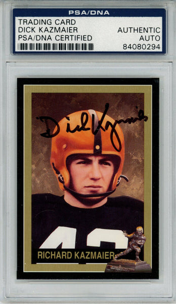 Dick Kazmaier Signed 1992 Downtown Athletic Club #17 Trading Card PSA Slab 43793 The number in the listing title is just an inventory sku for our records and is not the authentication number. This is the exact item that you will receive so please see pictures for condition. This is a trading card that was personally autographed by Dick Kazmaier. This has been professionally slabbed by Professional Authentication Services (PSA) and includes a certificate of authenticity from Denver Autographs.