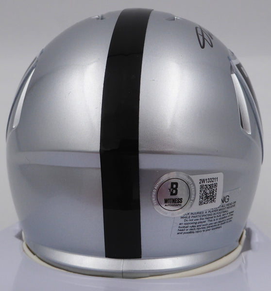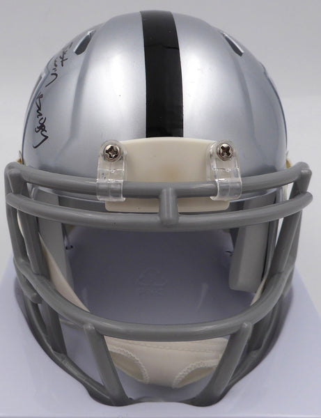 This is a Las Vegas Raiders Mini Helmet that has been hand signed by DJ D.J. Turner. This item was inscribed "Just Win Baby." There is an imperfection in the signature as shown. This item has been certified authentic by Beckett Authentication (BAS) and comes with their tamper-proof QR Code hologram.