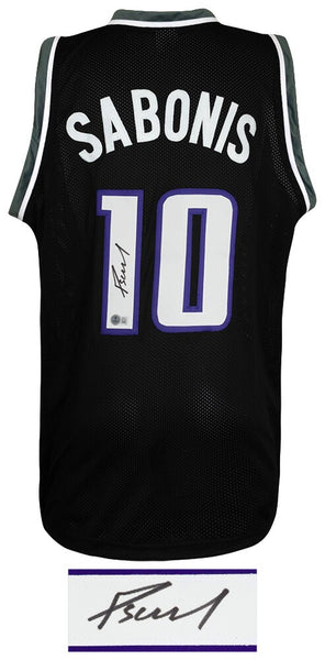 Domantas Sabonis signed black custom basketball jersey. Item comes with a Beckett Authentication tamper evident numbered sticker and matching Certificate of Authenticity which can be verified online. Jersey is size XL.