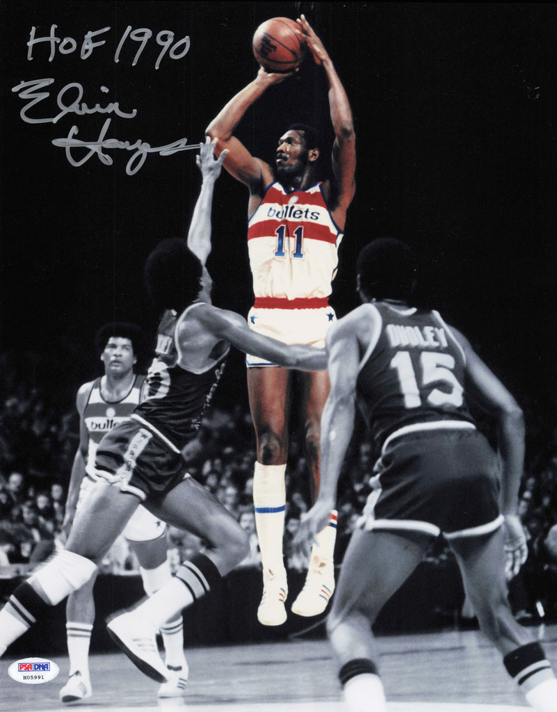 This is an 11x14 Photo that has been hand signed by Elvin Hayes. This item was inscribed "HOF 1990." This item has been certified authentic by PSA/DNA and comes with their tamper-proof hologram BUT is missing the matching certificate of authenticity.