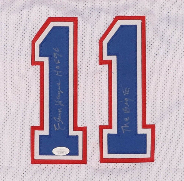 Custom on-court style jersey. Everything is sewn on, size XL. Hand-signed and inscribed by Elvin Hayes (HOF).The lot / autograph(s) includes an official James Spence Authentication (JSA) hologram and matching COA for authenticity purposes. The signing of this item was witnessed by JSA.Authentication: JSA COA