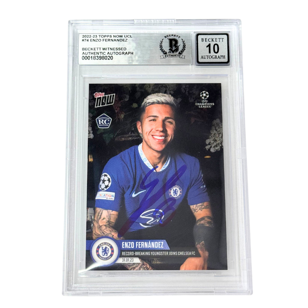 Enzo Fernandez Signed 2022-23 Topps Now UCL #74 - Beckett Witness