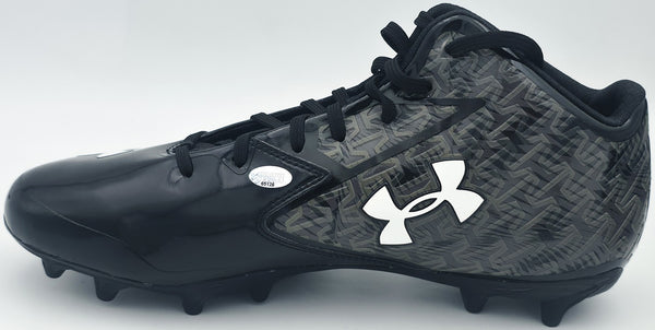 This is a pair of Black Under Armour Cleats that has been hand signed by Ernest Jones IV. Jones signed the right cleat. This item was signed in the presence of a Mill Creek Sports representative and comes with their serial numbered hologram and matching certificate of authenticity.