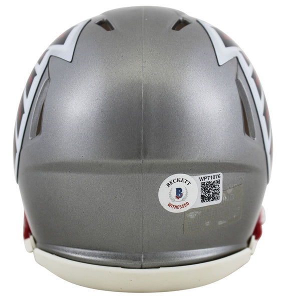 This Autographed Alternate Flash Speed Mini Helmet has been Personally Signed by Deion Sanders of the Atlanta Falcons. This item is 100% Authentic to include a hologram by Beckett Authentication Services. This item will come with the new Beckett Authentication hologram that has a scannable QR code rather than the traditional COA. If you would like to have a COA, you are welcome to reach out to Beckett for a printed certification once you receive your item. This is a BAS Witnessed Protection Program item which means a Beckett Authentication Service representative was present when this item was being signed. We conducted an autograph signing with Deion Sanders where multiples of the same item were signed. While the photographs are representative of this item, the size, placement and strength of the signature may vary. Each item is hand signed, therefore, each autograph is unique. This item can be verified through BAS Witnessed.