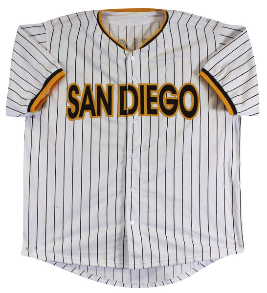 This Autographed White Pinstripe Pro Style Jersey has been Personally Signed by Fernando Tatis Jr. of the San Diego Padres. This item is 100% Authentic to include a hologram by Beckett Authentication Services. This item will come with an affixed Beckett Authentication Services (BAS) authentication sticker, which includes a scannable QR code to verify authenticity. Please note that Beckett no longer provides serial-numbered COA cards, and the attached BAS sticker will serve as the complete authentication for this item. The authenticity can be verified on Beckett Authentication Services website. This is a X-Large sized, non-branded, custom-stitched Jersey. This jersey was previously authenticated by JSA, however, it will not come with its matching JSA card. Its authenticity can still be searched and verified in JSA's database.