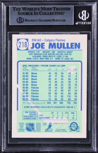 This Autographed 1990 O-Pee-Chee #218 Card has been Personally Signed by Joe Mullen of the Calgary Flames. This item is 100% Authentic, it comes slabbed and authenticated by Beckett Authentication Services. The authenticity can be verified on Beckett Authentication Services website.
