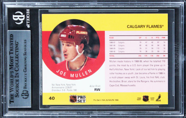 This Autographed 1990 Pro Set #40B Card has been Personally Signed by Joe Mullen of the Calgary Flames. This item is 100% Authentic, it comes slabbed and authenticated by Beckett Authentication Services. The authenticity can be verified on Beckett Authentication Services website.