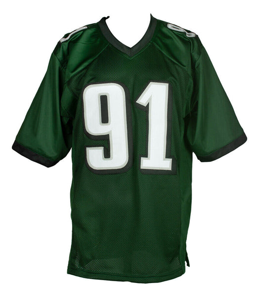 Featured is a Fletcher Cox signed custom green pro style football jersey. This jersey was hand signed by Fletcher Cox and authenticated by a JSA authentication services. Included with the jersey is a JSA witnessed hologram and certificate of authentication. This jersey would make a great addition to any sports memorabilia collection. This jersey has hand sewn numbers and letter and has NO logos or any affiliation with any manufacturer or team. It is simply intended as an autographed collectible. SPECIFICATIONS Autographed By: Fletcher Cox Team: Philadelphia Eagles Sport: Football Authentication: James Spence Authentication (JSA)