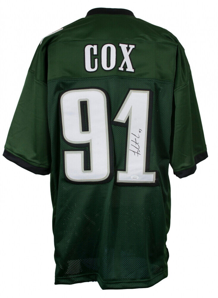 Custom on-field style jersey. Everything is sewn on, size XL. Hand-signed in black felt-tip pen by Fletcher Cox. The lot / autograph(s) includes an official James Spence Authentication (JSA) hologram and matching COA for authenticity purposes. The signing of this item was witnessed by JSA.Authentication: JSA COA All Items are brand new unless otherwise stated. On all signed jerseys up for auction stock images are used in these listings. ALMOST ALL OUR SIGNED JERSEYS ARE ADULT XL unless otherwise noted (It's the preferred size for autograph collectors for display purposes) The exact item you will receive will be the Same player as the one pictured, but may have the signature in different spots, be signed in a different color paint pen, and have different inscriptions than the photo shown. WE ARE NOT A WHOLESALER; WE TRY TO OFFER LOW PRICED SIGNED JERSEYS TO OUR CUSTOMERS SO EVERYONE GETS A FAIR CHANCE AT LOW PRICES ON QUALITY ITEMS. If you're buying multiple items please don't pay until you purchase all your auction items for that week (Thursday thru Sunday) We'll send you an invoice when all our weekly auctions are over on either Saturday or Sunday evening at 10:30 pm depending on how many items we have listed that week. We will adjust your shipping at this point. We use a Pack & Ship to send out our Auction items and they charge us $13. for the 1st item & $3. for each additional item. Thank you & Happy Bidding ALL INTERNATIONAL SHIPPING ON THESE ITEMS IS DONE THROUGH THE eBAY GLOBAL SHIPPING PROGRAM. PLEASE BE AWARE OF THESE COSTS BEFORE BIDDING.