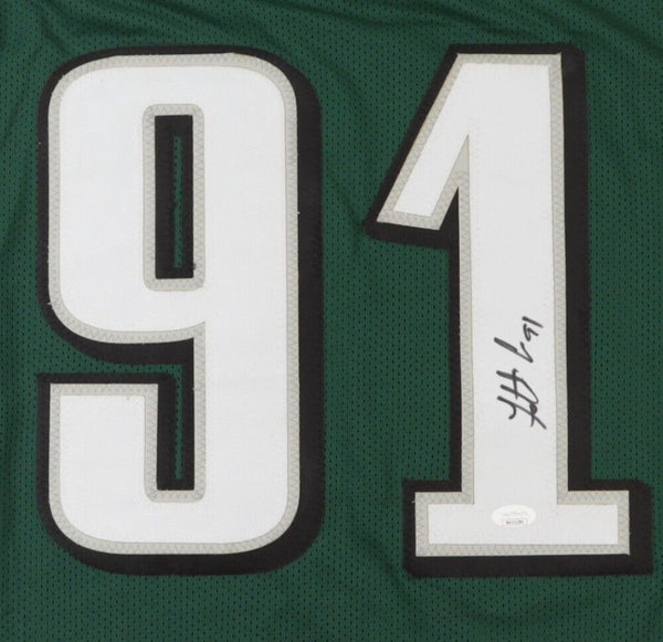 Custom on-field style jersey. Everything is sewn on, size XL. Hand-signed in black felt-tip pen by Fletcher Cox. The lot / autograph(s) includes an official James Spence Authentication (JSA) hologram and matching COA for authenticity purposes. The signing of this item was witnessed by JSA.Authentication: JSA COA