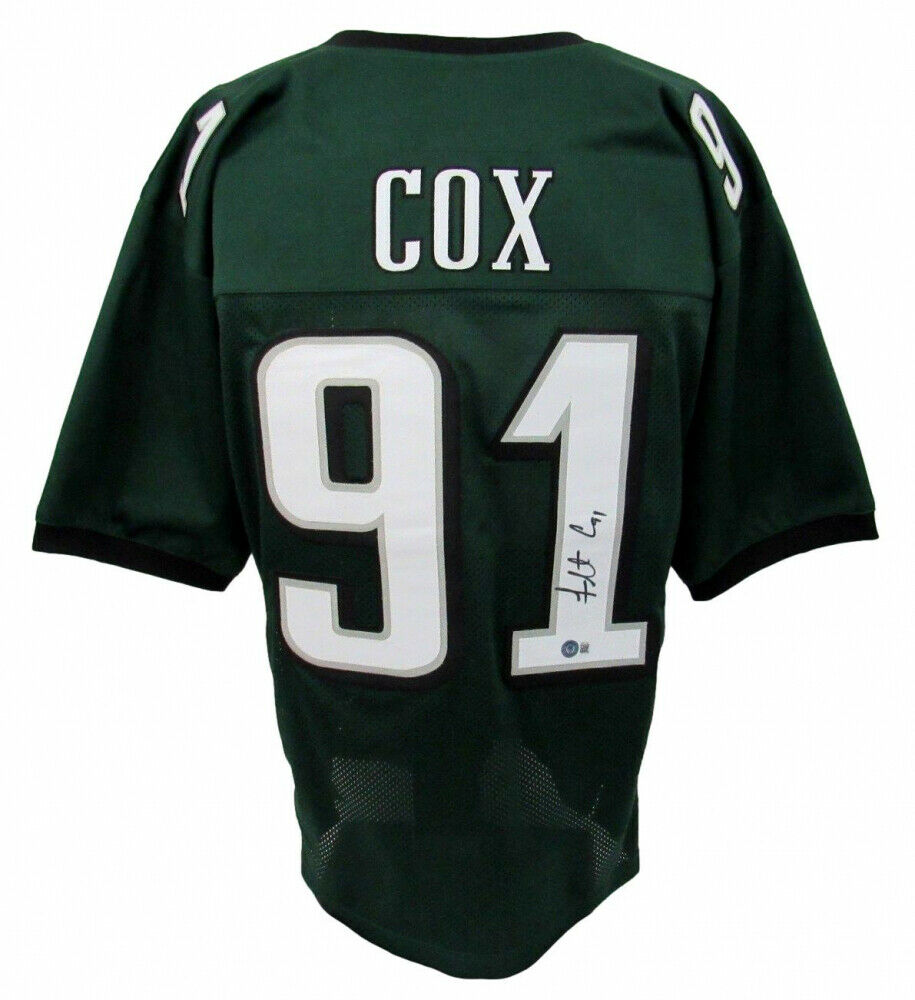 Custom on-field style jersey. Everything sewn on, size XL. Hand-signed by Fletcher Cox.The lot / autograph(s) includes an official Beckett Authentication Services serially numbered hologram and QR Code card for authenticity purposes. The signing of this item was witnessed by Beckett.Authentication: Beckett Hologram with QR Code card