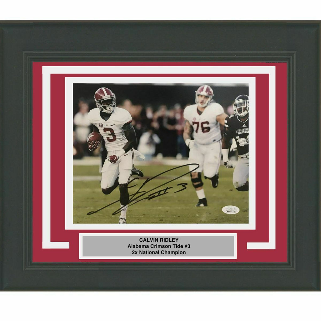 FRAMED Autographed/Signed CALVIN RIDLEY Alabama 8x10 College Photo JSA COA #5 The item is professionally framed & matted and is ready to be hung in your man cave! NOTE: COA card, if applicable, will be mounted on the back of the frame. Please allow up to 5 business days for the item to be framed, packaged safely, and picked up by USPS. Nameplate and matting requests can be made.