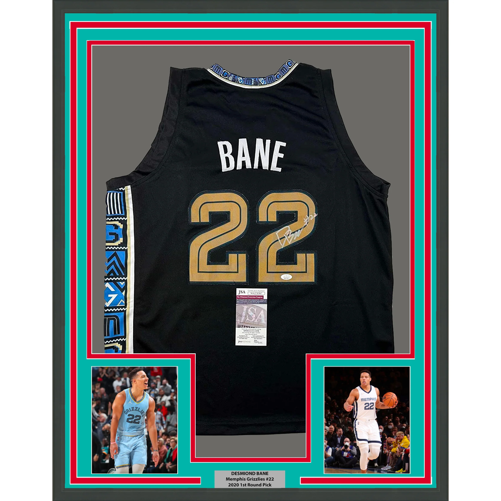 Framed Autographed/Signed Desmond Bane 33x42 Memphis Black Jersey JSA COA The item is professionally framed and matted with two 5x7 photos, measures 35 inches by 39 inches and is ready to be hung in your man cave! Photo and matting requests can be made.