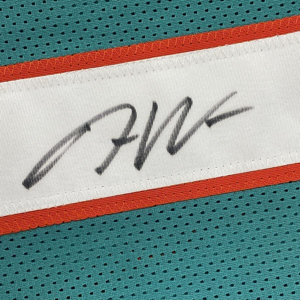 Framed Autographed/Signed Jaylen Waddle 33x42 Miami Teal Jersey Beckett BAS COA The item is professionally framed & matted with two 8x10 photos, measures 33"x42" and is ready to be hung in your man cave! NOTE: COA card will be mounted on the back of the frame, not inside it on top of the jersey as seen in the picture.