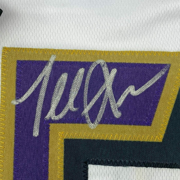 Framed Autographed/Signed Terrell Suggs 33x42 Baltimore White Jersey JSA COA The item is professionally framed & matted with two 8x10 photos, measures 33"x42" and is ready to be hung in your man cave! NOTE: COA card will be mounted on the back of the frame, not inside it on top of the jersey as seen in the picture.