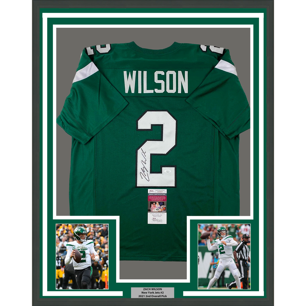 Framed Autographed/Signed Zach Wilson 33x42 New York Green Jersey JSA COA