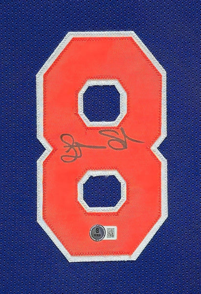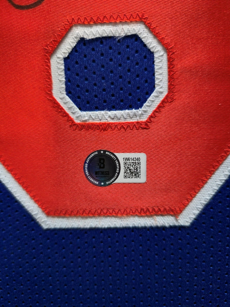 Custom Framed Latrell Sprewell hand signed New York Knicks style custom jersey.Beckett HoloThe authentication is from Beckett. This signature is authenticated by a representative of Beckett! 100% AUTHENTIC!!! The jersey has fully stitched numbers on the front and back. It is a great item and a must for all great sports fans!This item is professionally framed, it measures 32"x40" inside , 42"x34" outside , using UV protective Acrylic glass for safe keeping and safe transport, team color matting, black moulding and hanging hooks on the back. All additional items in frame seen in pictures included. 100% ready to hang in your fan cave.