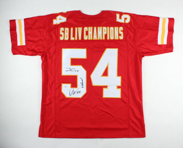 Custom on-field style Super Bowl LIV Champions jersey. Everything sewn on, size XL. Hand-signed by Frank Clark, Damien Williams and Bashaud Breeland.The lot / autograph(s) includes an official Beckett Authentication Services serially-numbered hologram and matching COA for authenticity purposes. The signing of this item was witnessed by Beckett.Authentication: Beckett COA