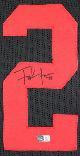 This Autographed Black Pro Style Jersey has been Personally Signed by Frank Gore of the San Francisco 49ers. This item is 100% Authentic to include a Certificate of Authenticity (COA) / hologram by Beckett Authentication Services. This is a BAS Witnessed Protection Program item which means a Beckett Authentication Service representative was present when this item was being signed. We conducted an autograph signing with Frank Gore where multiples of the same item were signed. While the photographs are representative of this item, the size, placement and strength of the signature may vary. Each item is hand signed, therefore, each autograph is unique. This item can be verified through BAS Witnessed. This is a X-Large sized, non-branded, custom-stitched Jersey.
