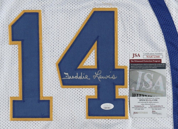 Custom on court style jersey. Everything is sewn on, size XL. Hand-signed by Freddie Lewis.The autograph(s) includes an official James Spence Authentication (JSA) hologram and matching COA for authenticity purposes. The signing of this item was witnessed by JSA.Authentication: JSA COA