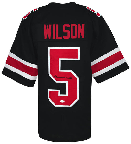 Garrett Wilson signed black custom college football jersey. Item comes with a JSA (James Spence Authentication) tamper evident numbered sticker and matching Certificate of Authenticity which can be verified online. Jersey is size XL.