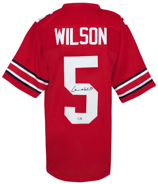 Garrett Wilson signed red custom college football jersey. Item comes with a Beckett Authentication tamper evident numbered sticker and Certificate of Authenticity which can be verified online. Jersey is size XL.