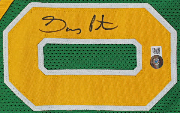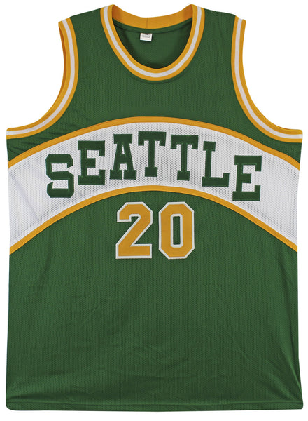This Autographed Green Pro Style Jersey has been Personally Signed by Gary Payton of the Seattle Supersonics. This item is 100% Authentic to include a hologram by Beckett Authentication Services. This item will come with an affixed Beckett Authentication Services (BAS) authentication sticker, which includes a scannable QR code to verify authenticity. Please note that Beckett no longer provides serial-numbered COA cards, and the attached BAS sticker will serve as the complete authentication for this item. This is a BAS Witnessed Protection Program item which means a Beckett Authentication Service representative was present when this item was being signed. The authenticity can be verified on Beckett Authentication Services website. This is a X-Large sized, non-branded, custom-stitched Jersey.