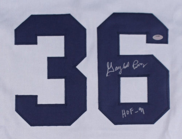 Gaylord Perry Signed New York Yankees Jersey Inscribed "HOF 91" (Schwartz COA)