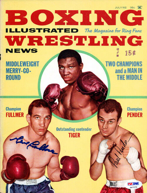This is a Magazine Cover that has been hand signed by Gene Fullmer & Paul Pender. Please Note: This is the Cover of the Magazine as shown. This is NOT the entire magazine. It has been certified authentic by PSA/DNA and comes with their sticker and matching certificate of authenticity.