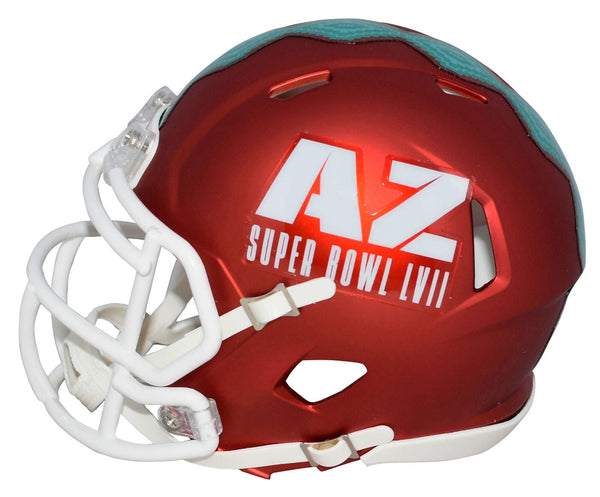 George Karlaftis, star defensive end for the Kansas City Chiefs, has hand signed this Super Bowl LVII Riddell Speed mini helmet at a private signing. This item is authenticated by Beckett Authentication Services and was signed in the presence of one of their representatives. Their tamper-evident hologram featuring a QR code and serial number is on the item. The authenticity can be verified online by entering the serial number or scanning the QR code.Item pictured may not be the exact item you will receive. It will be similar quality, and we guarantee your satisfaction.