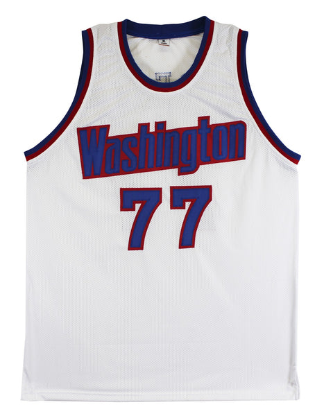 This Autographed White Pro Style Jersey has been Personally Signed by Gheorghe Muresan of the Washington Bullets. This item is 100% Authentic to include a hologram by Beckett Authentication Services. This item will come with an affixed Beckett Authentication Services (BAS) authentication sticker, which includes a scannable QR code to verify authenticity. Please note that Beckett no longer provides serial-numbered COA cards, and the attached BAS sticker will serve as the complete authentication for this item. This is a BAS Witnessed Protection Program item which means a Beckett Authentication Service representative was present when this item was being signed. We conducted an autograph signing with Gheorghe Muresan where multiples of the same item were signed. While the photographs are representative of this item, the size, placement and strength of the signature may vary. Each item is hand signed, therefore, each autograph is unique. This item can be verified through BAS Witnessed. This is a X-Large sized, non-branded, custom-stitched Jersey.
