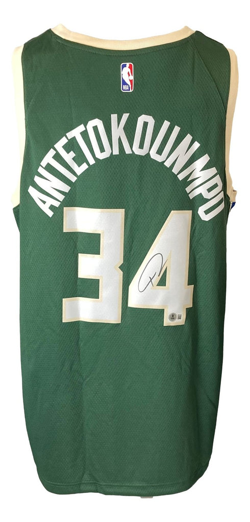 Featured is a Giannis Greek Freak Antetokounmpo signed Milwaukee Bucks Nike Swingman basketball jersey. This jersey was hand signed by Antetokounmpo and comes with the Beckett witnessed hologram and certificate of authenticity. Jersey size may vary. This would make a great addition to any sports memorabilia collection!. SPECIFICATIONS Autographed By: Giannis Antetokounmpo Team: Milwaukee Bucks Sport: Basketball Authentication: Beckett Grading Services